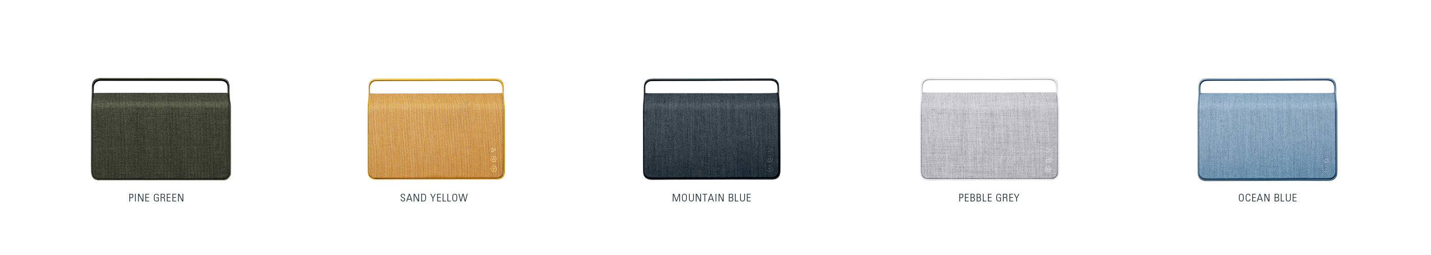 The Nordic design of Copenhagen 2.0 is reflected in its shape and in the choice of materials. Contrasts interplay with each other; the warm, rough ‘look and feel’ of the textile against the smooth, matte polished aluminum frame. The discretely embossed logo and embroidered volume buttons complement the understated look of Copenhagen 2.0.